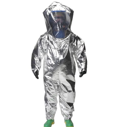 两件式设计,外层为玻璃纤维镀铝隔热防护层,内层为加强型A级气密型防化服,全封闭型前入式,呼吸器内置型设计,边缝采用内外双层热合胶带焊缝结构,40mil厚的特大加宽PVC软质宽屏外涂敷10mil厚的特氟隆防化涂层,手套防护系统为ONE-GLOVE。