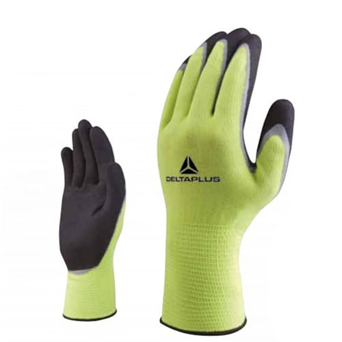 代尔塔201728双丁腈涂层无缝高质量涤纶针织手套。手掌和手指双丁腈涂层,表层较硬的防护丁腈,里层透气性的舒适层。