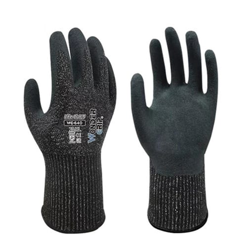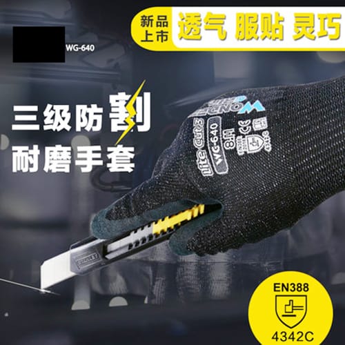 1.13针高性能混合增强尼龙+玻纤衬里,提供优良的防割性能,适用于中度防割风险作业环境。 2.先进独特的丁腈发泡涂层技术,提供良好的透气性能, 同时为干燥、潮湿及轻油的作业环境提供优越的抓握力。 3.人体工学设计,舒适度与灵巧度俱佳。 浸胶 :丁腈超细发泡/掌浸 衬里 :尼龙 玻璃纤维 针数 :13针 尺码 :S M L XL 颜色 :深灰色 包装 :120双/箱 特点: 防切割 超耐磨 抗油