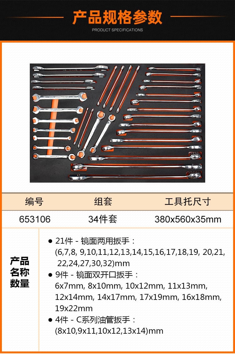 EVERPOWER/艾威博尔65310634件扳手工具托380×560×35mm(单位:套)