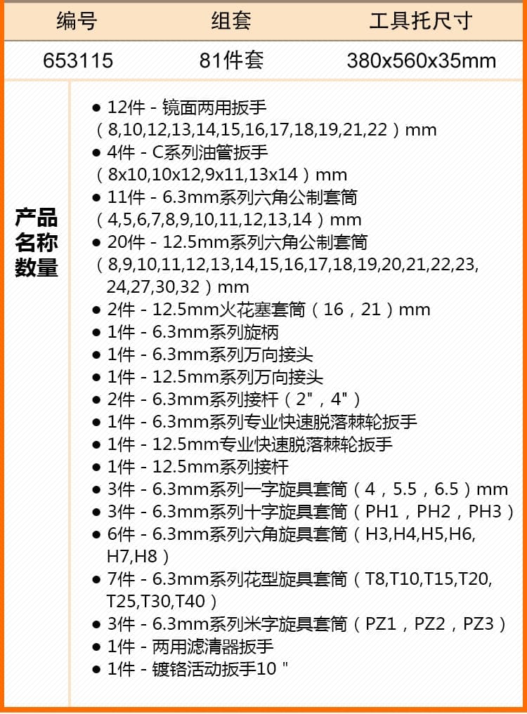 EVERPOWER/艾威博尔81件套筒/扳手工具托380×560×35mm