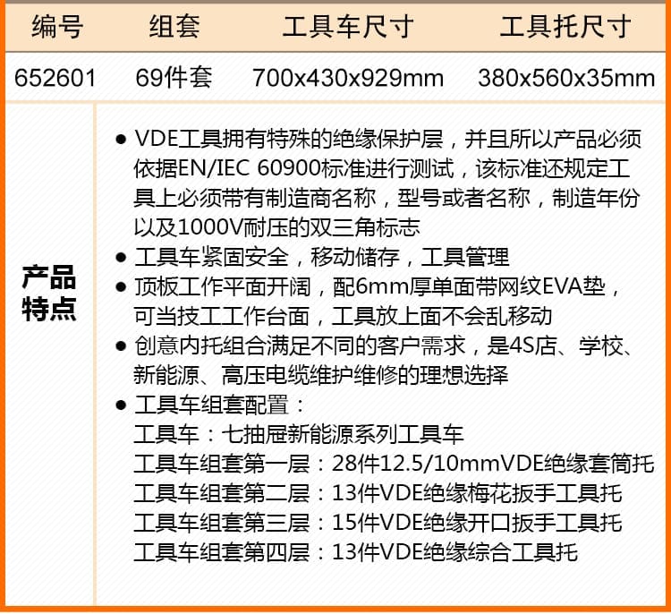 EVERPOWER/艾威博尔69件新能源(绝缘)维修工具车组套