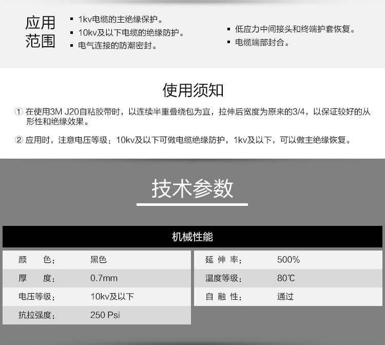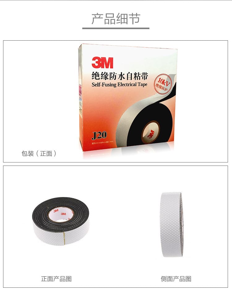 3M电工胶带电气电缆绝缘防水胶带橡胶耐高温高压防潮自粘胶布J20