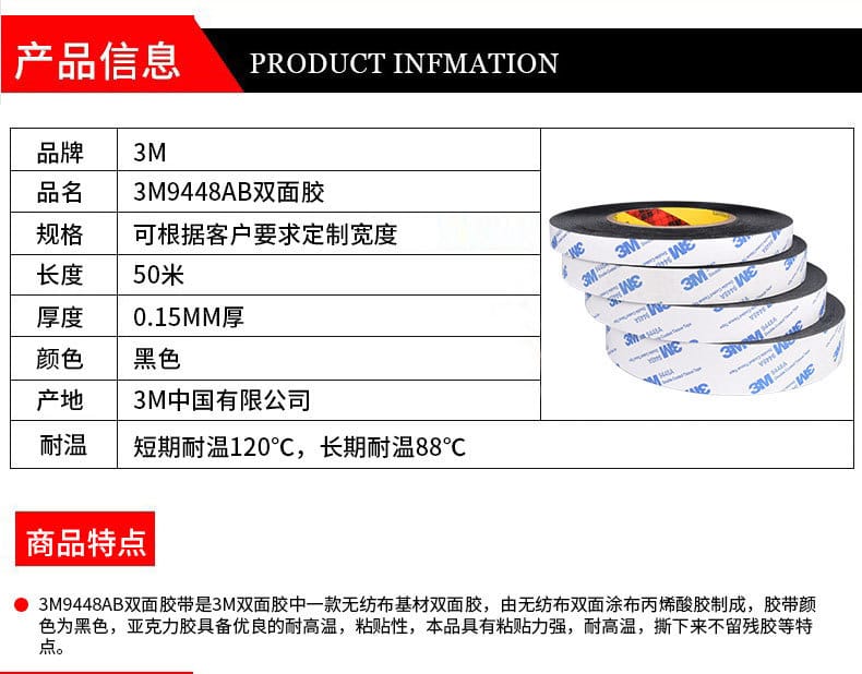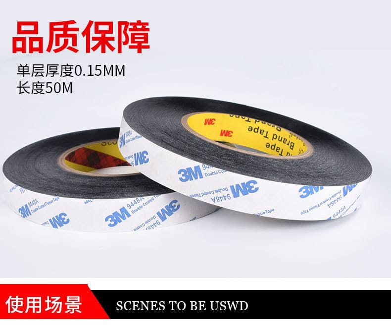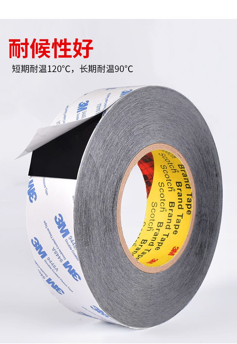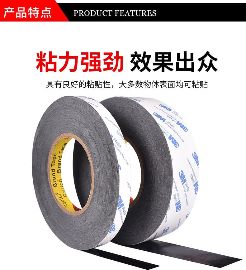 3m9448AB正品双面胶耐高温 强力无纺布基材黑色遮光工业双面胶带