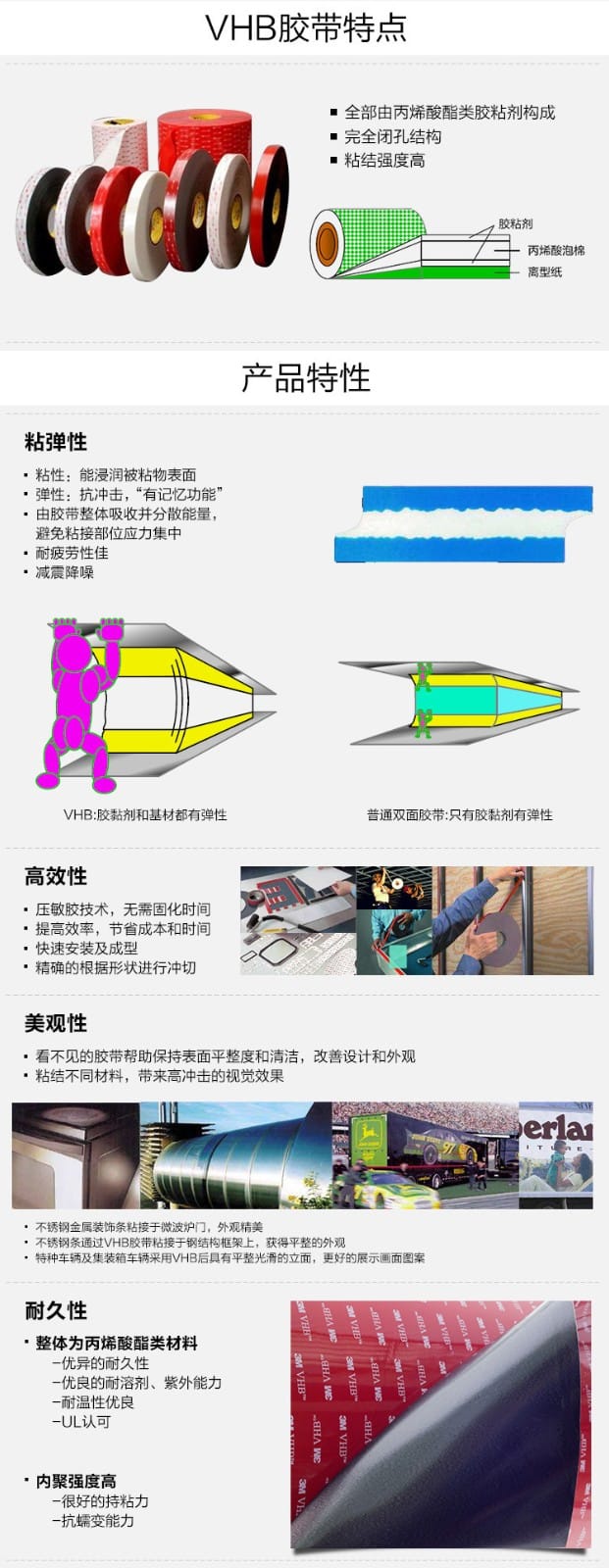 3m双面胶 批发车用VHB泡棉高粘挂钩相框胶贴防水强力无痕双 面胶
