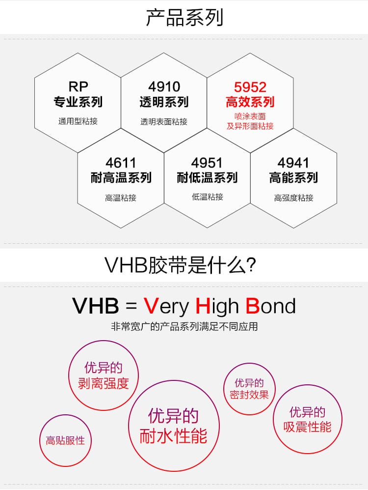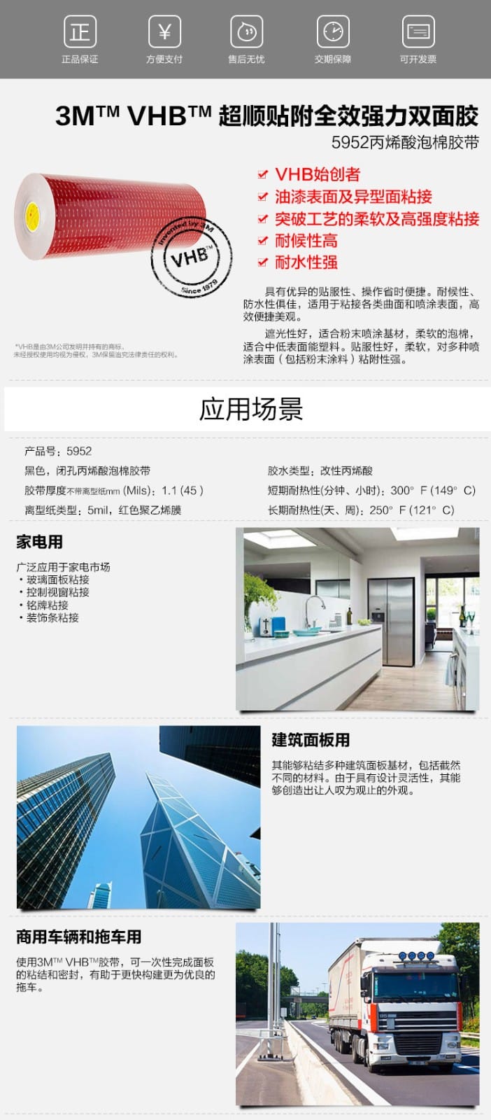 3M5952批发正品跨境专供强力胶带高粘无痕黑色泡棉汽车3M双面胶带