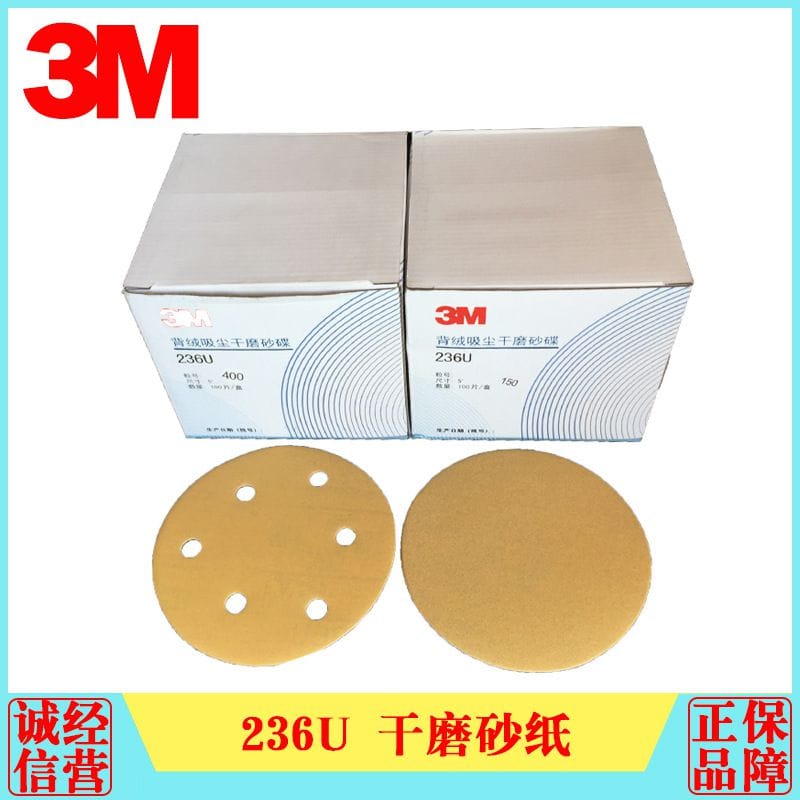 3M 236U干磨6寸砂纸 背绒圆盘砂纸 带孔背胶抛光自粘砂纸