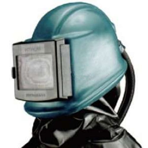 A133130-00:COMMANDER喷砂头盔,皮质披肩,集中视野,头罩材料:玻纤加强聚酯橡胶涂层,标准:EN271,NPF:1000,包装:1个,带皮质披肩,流量指示计,静音器,系带