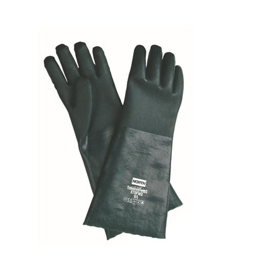 850FWG/10XLTrawler King PVC 手套,全涂层,粗糙防滑纹,平针编织衬里,36cm长, 直口袖,绿色,尺码10XL。