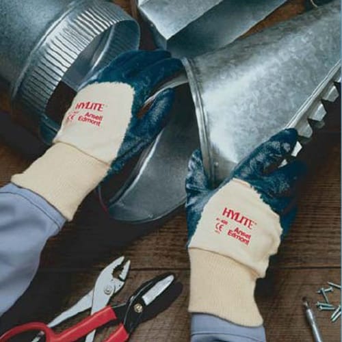 ansell Hylite 47-400丁腈涂层手套 是中量型应用丁腈涂层手套,提供优异的抗割,抗刺穿和耐磨性。Hylite 使用紧贴式内衬以 及贴手的外围设计提供了极佳的灵活性。 特性: 不含硅; 可以机洗; 100%棉针织内衬; 独一无二的Ansell丁腈配方; 反向菱形表面提供极佳的抓握性。 冲压操作; 维护工作; 适用范围: 建筑; 回收垃圾; 电气和电子工业; 钢板和轻金属处理; 装配和检验引擎组件和零配件。