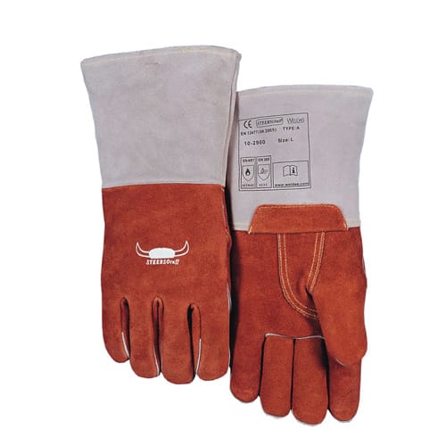 蛮牛王(STEERSOtuff)烧焊手套是专为高温烧焊而设计, 在高温工作环境下比普通烧焊手套的连续工作时间更长. 手套长35cm(14”), 均采用杜邦Kevlar4线防火线缝制, 袖内层是用防火阻燃布缝制, 特宽直拇指护缝层设计. 整只手套各层可单独移动, 提升灵活性及舒适度。