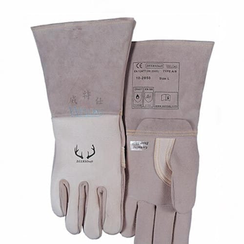 驯鹿王(DEERSOsoft)高档鹿青皮烧焊手套 ,手掌无内里设计提供高度手感及易于握持物体, 手背有特舒柔(COMFOflex)内里层作隔热用途。您手上最高贵的贴身保护层,手套长37cm(14 1/2”), 采用高雅的北美鹿皮制成, 其特有的天然柔软及隔热性能提供最佳灵活性,手感、耐用及隔热效果。