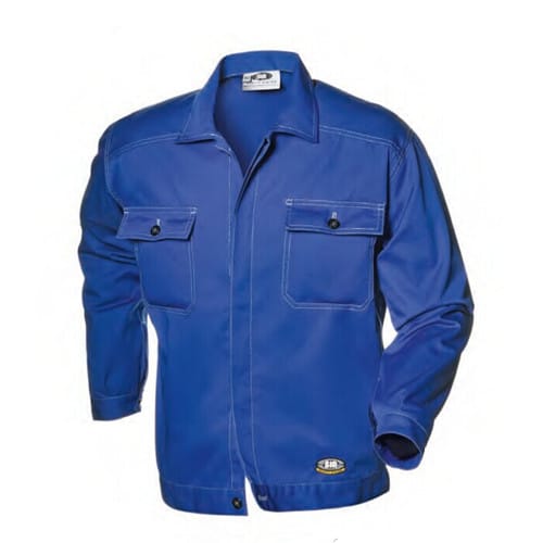 2个胸袋短夹克,纽扣门襟,涤棉80/20,克重150g/m2,宝蓝色。