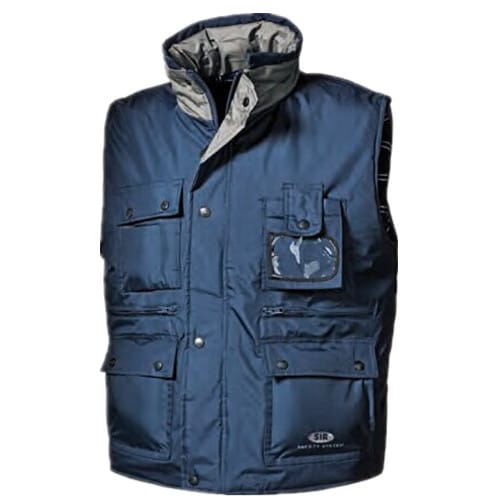 保暖背心,尼龙外层PVC涂层,法兰绒衬里,内胆200g,灰色高领,多口袋,HLS系统。