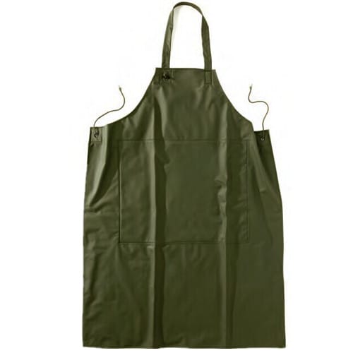 防酸碱围裙,PVC/PU复合材料,耐酸并抗动物脂肪,尺寸120*90cm,长短和腰围均可调节,中间区域加强,绿色。