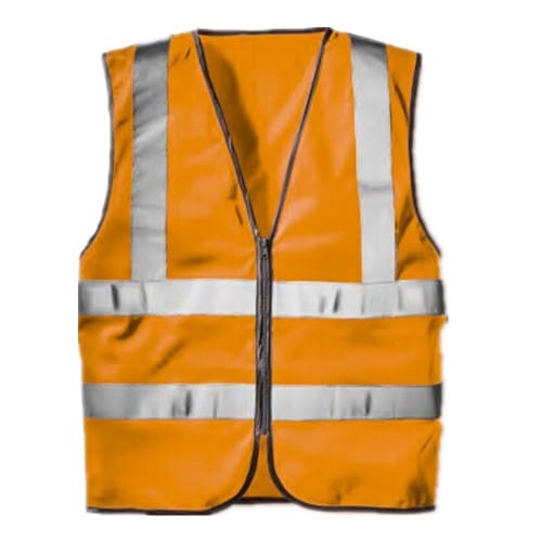 橙色高能见度背心,100%涤纶,190g/m2,拉链前襟。尺码M-XL。