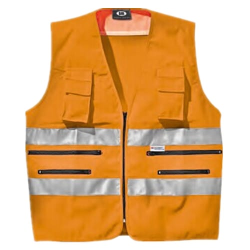 橙色高能见度背心,100%涤纶,170g/m2,拉链前襟,多袋款式。尺码M-XXL。