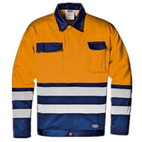 高能见度夹克,橙蓝双色,Mistral面料,60%棉40%涤,270g/m2,尺码44-62。