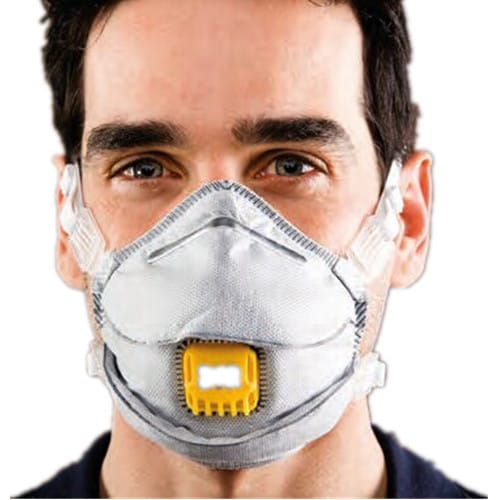 焊接专用抛弃型高效口罩,含活性炭层,带呼吸阀,可过滤TLV值以下酸性蒸汽和烟气,适用于TLV值12倍以下中度毒性污染环境。5只装。