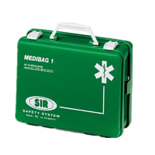 ABS塑料防水急救箱,配有挂墙支架和便于提携的把柄。内含配置符合15/7/03D.M.388