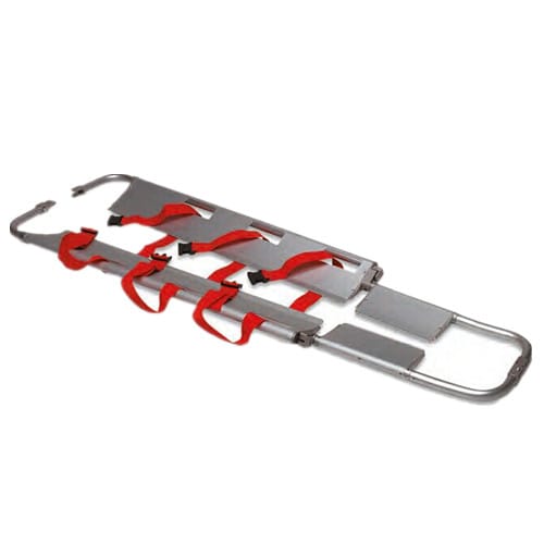 固定伤员免受额外伤害的专用担架,完全用铝合金制作,有调节和在不同长度固定的装置,配有3条固定伤员的安全带。防滑表面,额定承载力为150kg。