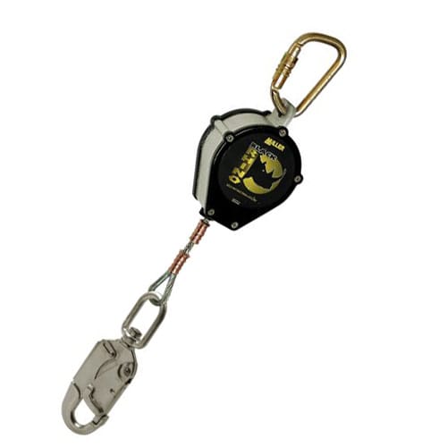• Self-retracting lifeline complete with stainless steel wire and carabiner