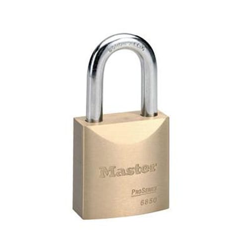 铜挂锁 6850KAMCN 总锁体宽51mm 锁钩直径9mm 锁钩内高37mm 建议用途:车库,店门,栅栏 1.淬硬钢锁钩 2.实心黄铜锁体 3.双滚珠锁紧锁钩 4.精密6弹子锁胆 5.同花钥匙