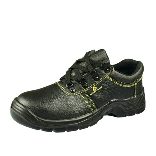 低帮安全鞋,印度水牛皮鞋面。聚酰胺衬里,排汗性能佳。鞋垫可脱卸,聚酰胺EVA材料。单密度聚氨酯(PU)注塑鞋底,带钢包头和钢底板。防滑性能优异,轻便舒适。防砸、防穿刺、防静电、耐磨、耐油。