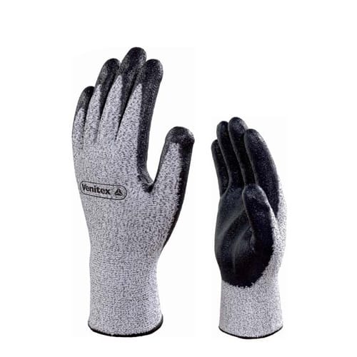 产品描述 :无缝针织手套,高性能TAEKI®聚乙烯纤维,掌面和指尖带丁腈涂层,10cm的弹性袖口。13针。