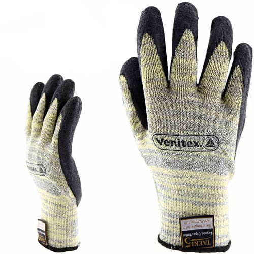 TAEKI系列乳胶涂层防切割手套,10针,防水乳胶涂层,牛皮加强掌面,最高等级耐磨损、防切割、抗撕裂性能,耐高温250℃,佩戴舒适灵巧。