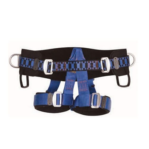 坐式安全带是由45毫米宽聚酰胺带做成,包括:2个侧部扣环和一个前部扣环,一个带毛圈布衬里的热压成型的背部支座,