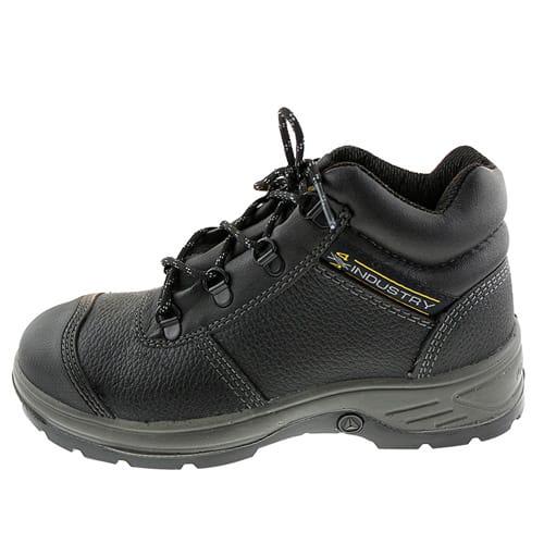 4×4 INDUSTRY系列中帮高性能S3安全鞋,全粒面进口水牛皮鞋面,耐磨鞋头保护, PU中底带Panoshock®减震材料,橡胶大底,防砸、防穿刺、防静电、耐磨、耐油、耐弱酸碱、SRC级防