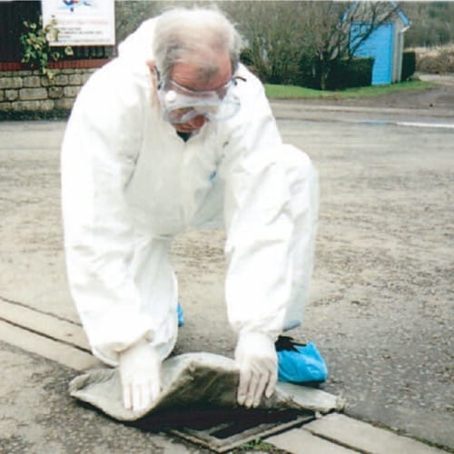 用来阻止泄漏的有害物流入下水管道。通过放置到下水口及周边能产生隔绝的作用,控制泄漏范围,以减少使用更多昂贵的吸收棉。