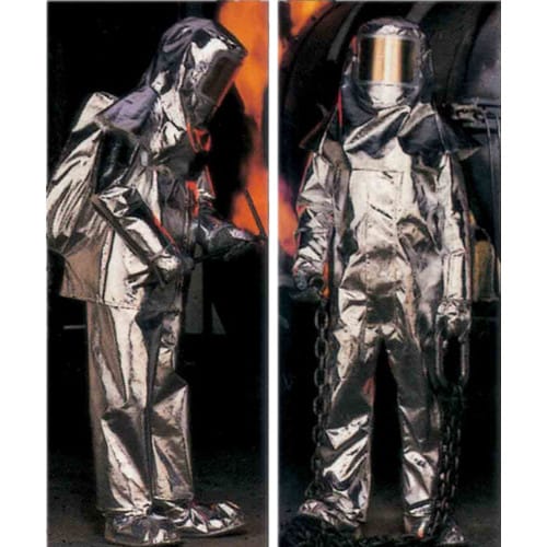该隔热服外层采用镀铝玻璃纤维,不会燃烧,也不会爆炸,而且在高温或低温的暴露中,不会伸缩。