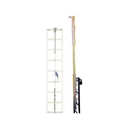 ●具有减震功能的顶部支架,采用特殊工艺加工的镀锌材质; ●有张紧调节功能的底部支架,采用镀锌材质; ●配有钢绳限位夹,最大限度避免钢绳受风和其他外界因素影响而产生的震动,延长使用寿命; ●采用8mm防锈处理的镀锌钢绳,不锈钢钢绳抓绳器(不包含在系统中,需另外订购); ●产品符合美国ANSI标准、OSHA规范,并通过加拿大CSA认证。