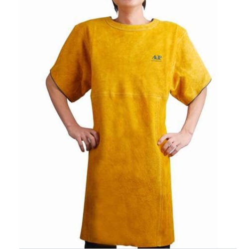 金黄色牛二层芯皮全皮短袖围裙,适于在炎热气温或室内焊接使用,背部透气,不会感觉太炎热。