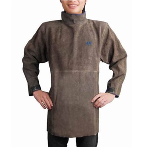 炭啡色牛二层芯皮全皮护胸立领长袖围裙,适于在炎热气温或室内焊接使用,背部透气,不会感觉太炎热。