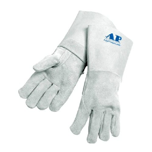 ●采用精选的A级/AB级牛二层皮制成,皮质柔软均匀适中; ●耐磨抗割隔热,防火性能好; ●采用杜邦Kevlar防火线面线缝制; ●35CM长,无内里,直拇指护缝设计方便输送焊丝; 尺寸:L、XL