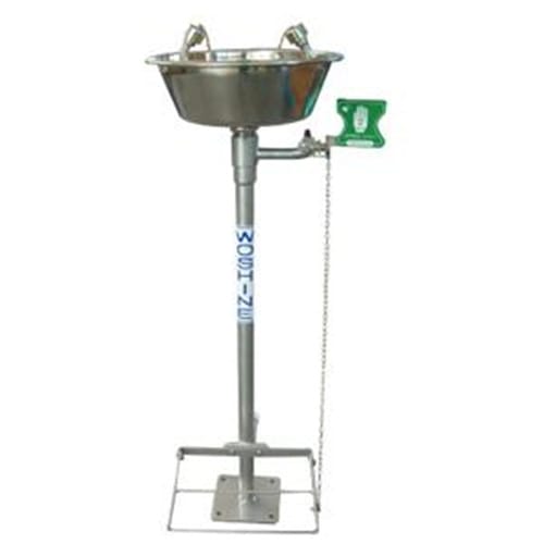 WS592标准型洗眼器,不锈钢进水管件+不锈钢脸盆脚,踏或手开两种方式,,亮黄色环氧涂层,室内非防冻型
