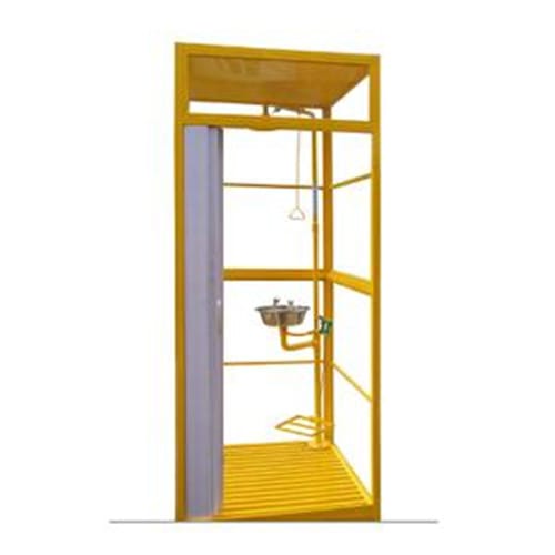WS680标准型紧急洗消房:双面铝塑板,亮黄色环氧树脂涂层,PVC推拉门,含蓄水托盘(可选配WS690型或WS692型喷淋洗眼器,价格另计)。