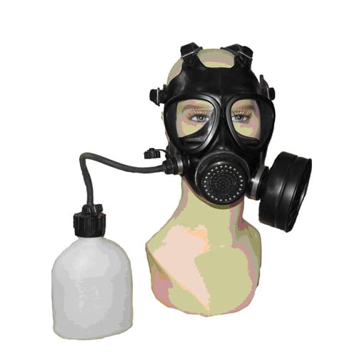 该面具设计有饮水系统,必要时可利用附件将面罩与水壶相连,供人员在染毒区域饮水或进食流体。面罩柔软适宜,松紧带具有弹性,且可任意调节保证佩戴舒适气密。大三角形镜片由光学塑料制成,表面经特殊处理。具有开阔的视野,良好的光学、耐磨、耐冲击性能。