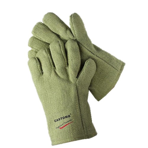 材质:手套采用对位芳纶与过氧碳纤维混纺,手套采用粗斜纹布缝制。 特性:手套耐温性能强,可耐650度-800度高温,耐磨,可左右手互换使用,散热效果好,使用寿命长。 应用场所:广泛应用于冶金﹑玻璃﹑钢铁制造、光伏、太阳能电池生产等大多数高温作业场所。