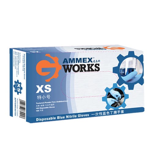 爱马斯APFGWC40100一次性丁腈手套(无粉,麻面,蓝色)