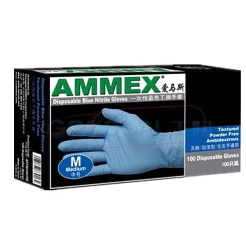 爱马斯APFNC40100一次性丁腈手套(无粉,麻面,蓝色)