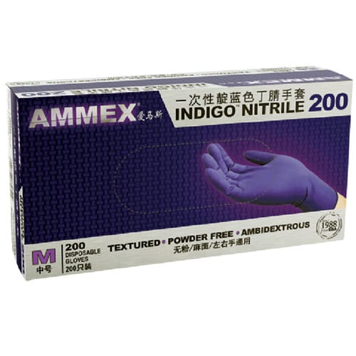 爱马斯APFINC40100一次性丁腈手套(无粉,麻面,靛蓝色)