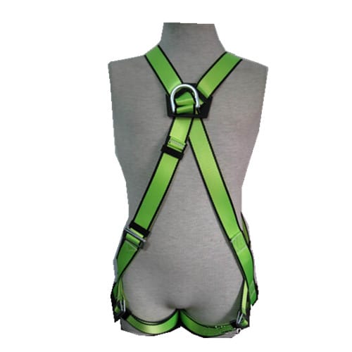 产品名称:全身式安全带 尺寸:均码 材质:织带为聚酯 产品说明:配有一个背部承力D型环,胸前也有一个D型环,背带、腿带均可调节,以适合人体,安全便利。静态负荷强度大于22KN。 执行标准:GB-2009