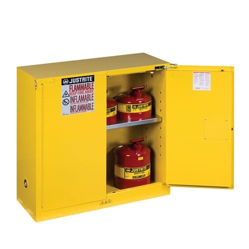 行业领先的Justrite Sure-Grip®防火安全柜提供安全、可靠的易燃液体存储与保护。
