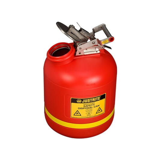 Justrite 液体处置罐由高密度聚乙烯制成,具有绝佳的耐化学腐蚀和防漏性能。
