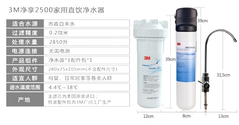 3M净水器家用直饮 3M DWS2500-CN净享净水系统