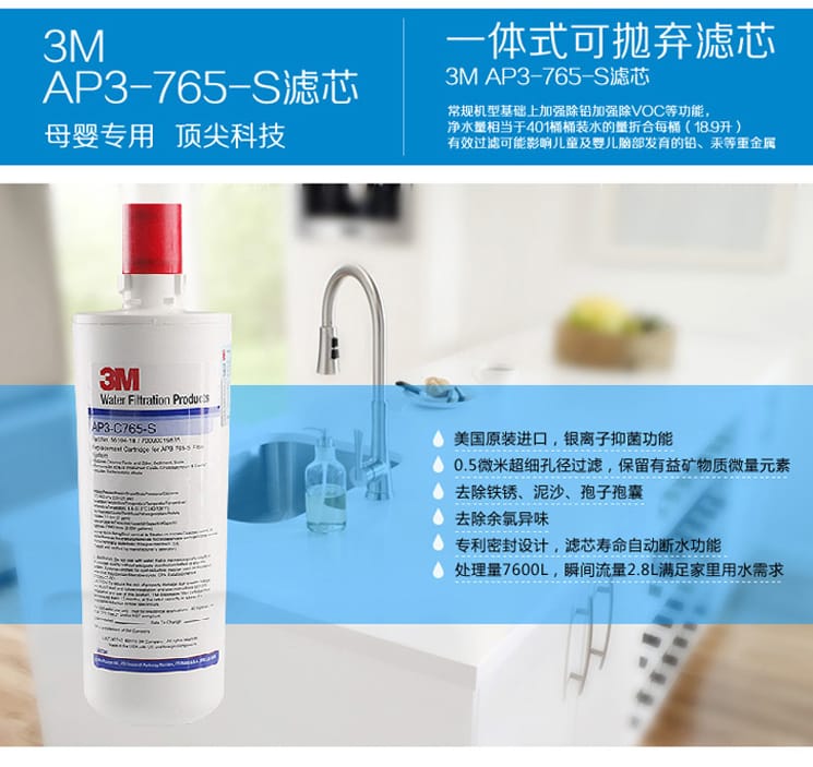 ■ 0.5um超细过滤孔径 内置阻垢功能